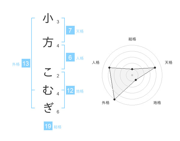 小方 こむぎさんの総格は19画の1点