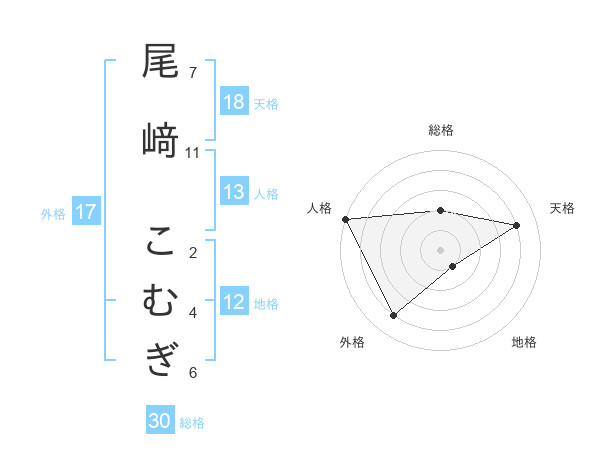 尾﨑 こむぎさんを姓名の画数から五運を鑑定