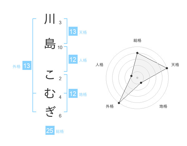 川島 こむぎさんの外格は13画の5点!