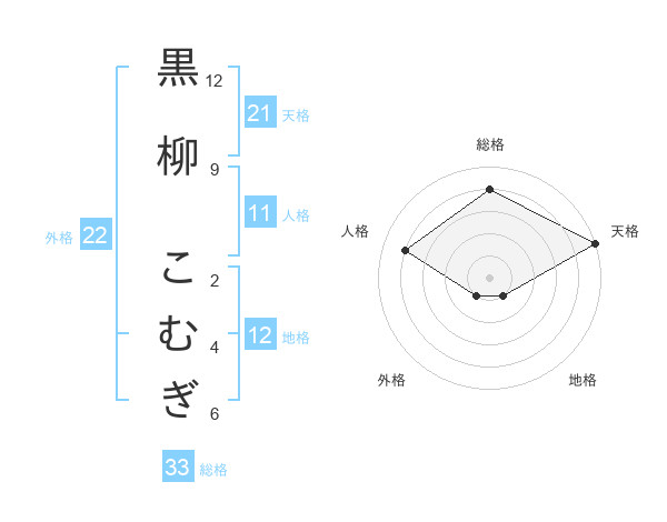 黒柳 こむぎさんの天格は21画の5点!