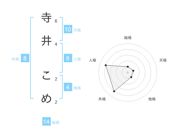 寺井 こめさんの天格は10画の1点!