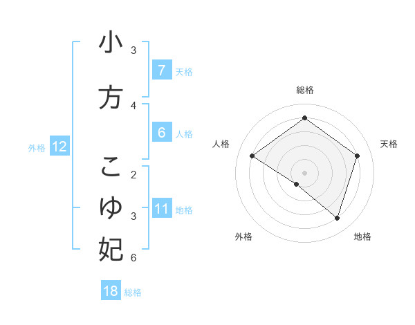 小方 こゆ妃さんを姓名の画数から五運を鑑定