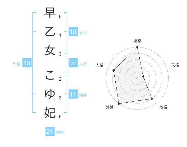早乙女 こゆ妃さんの総格は21画の5点