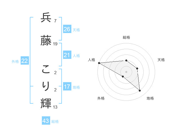 兵藤 こり輝さんの総格は43画の2点