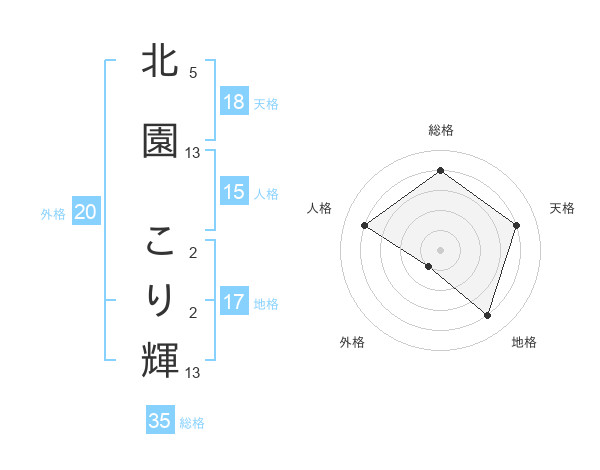 北園 こり輝さんの総格は35画の4点!