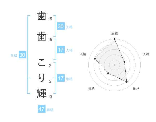 歯歯 こり輝さんを姓名の画数から五運を鑑定