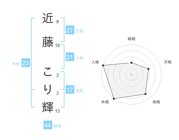 近藤 こり輝さんの外格は23画の5点!