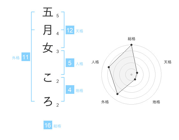 本サイトの鑑定結果の正当性は保証しません。鑑定結果は参考程度にお読みください。実際の名づけにご利用される場合は、姓名判断についてご自身でよくお調べください。