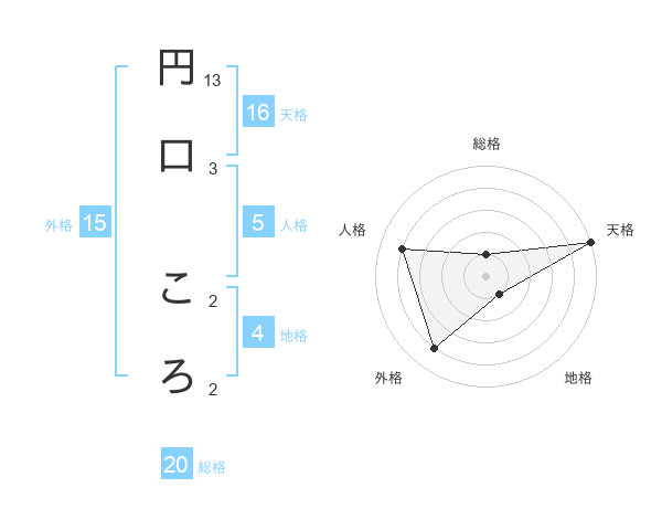 円口 ころさんの総格は20画の1点!