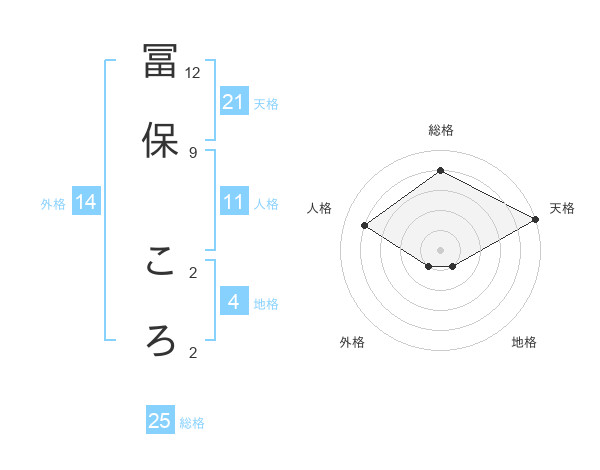 冨保 ころさんの総格は25画の4点!