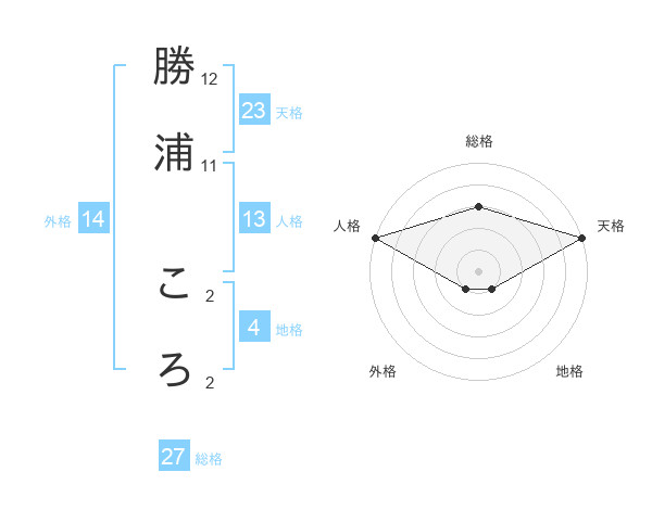 勝浦 ころさんを姓名の画数から五運を鑑定