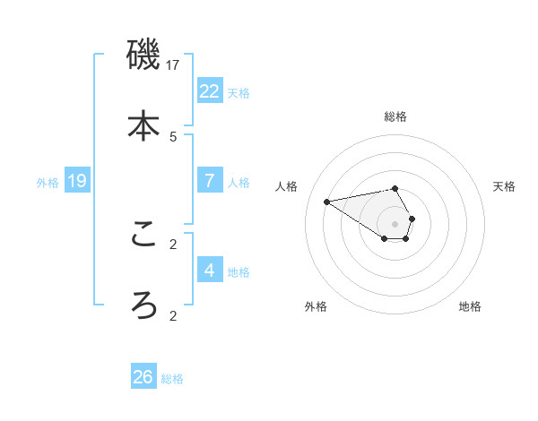 磯本 ころさんの総格は26画の2点!