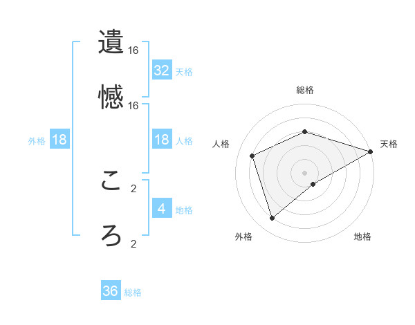 遺憾 ころさんの外格は18画の4点!