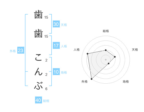 歯歯 こんぶさんを姓名の画数から五運を鑑定