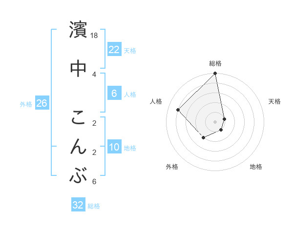 濱中 こんぶさんの総格は32画の5点!