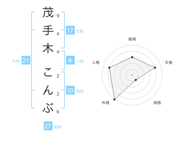 茂手木 こんぶさんの総格は27画の3点!