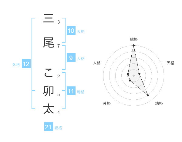 三尾 こ卯太さんを姓名の画数から五運を鑑定