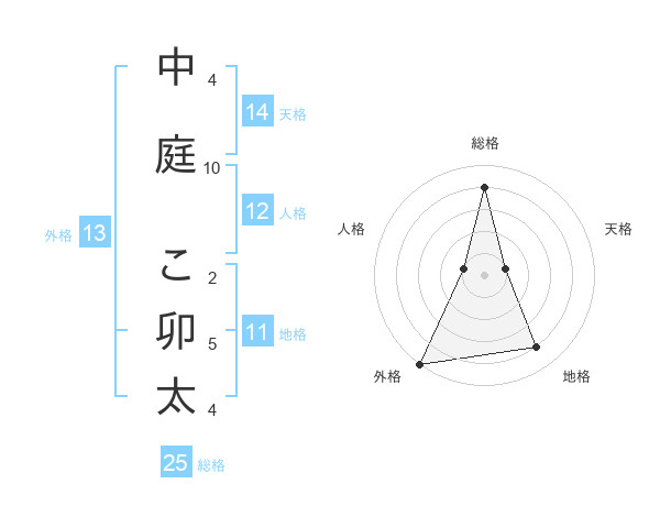 中庭 こ卯太さんの外格は13画の5点!