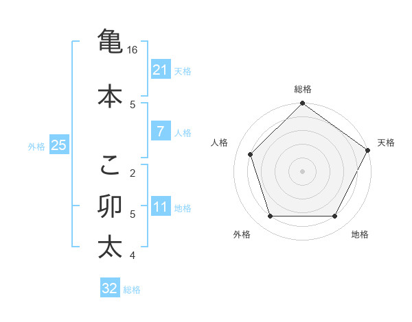 亀本 こ卯太さんを姓名の画数から五運を鑑定