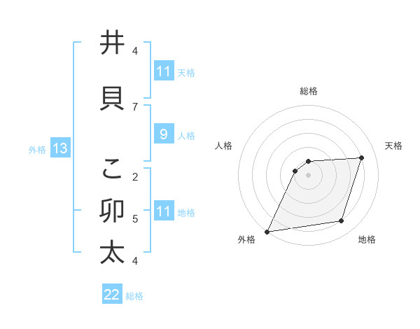井貝 こ卯太さんを姓名の画数から五運を鑑定