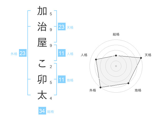 加治屋 こ卯太さんの天格は23画の5点