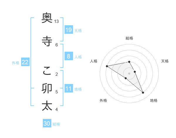 奥寺 こ卯太さんを姓名の画数から五運を鑑定