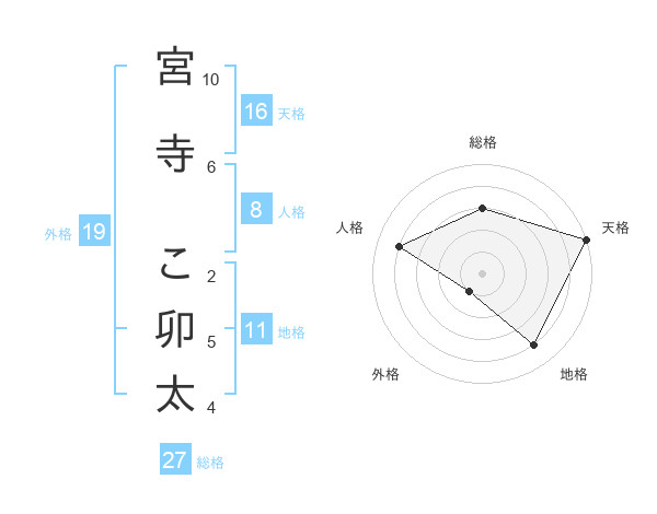 宮寺 こ卯太さんの地格は11画の4点!