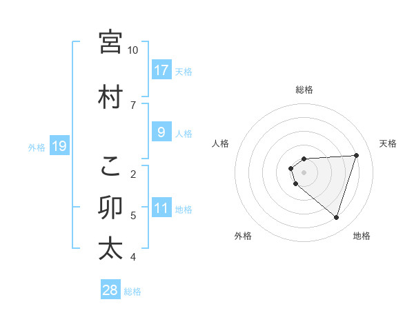 宮村 こ卯太さんの総格は28画の1点!