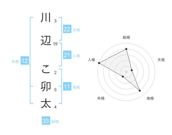 川辺 こ卯太さんを姓名の画数から五運を鑑定