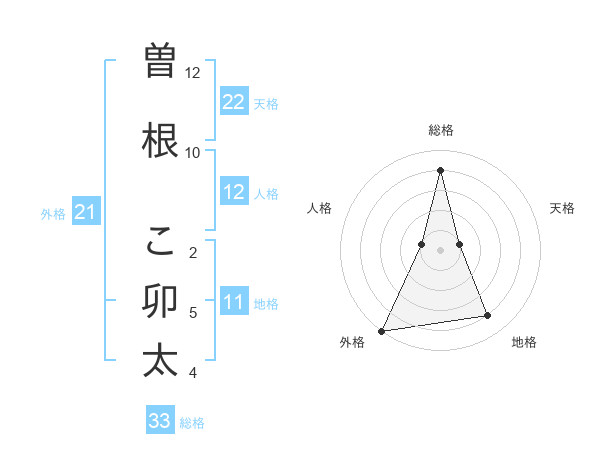 曽根 こ卯太さんを姓名の画数から五運を鑑定