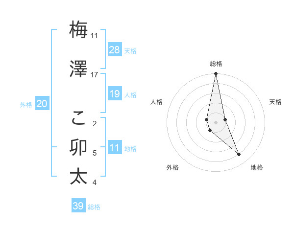 梅澤 こ卯太さんを姓名の画数から五運を鑑定