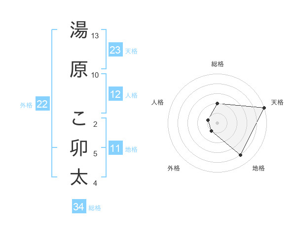 湯原 こ卯太さんを姓名の画数から五運を鑑定