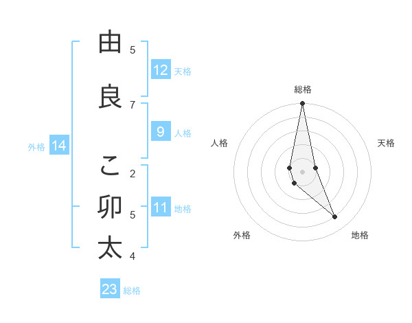 由良 こ卯太さんの総格は23画の5点!