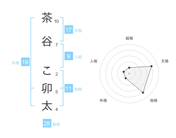 茶谷 こ卯太さんを姓名の画数から五運を鑑定