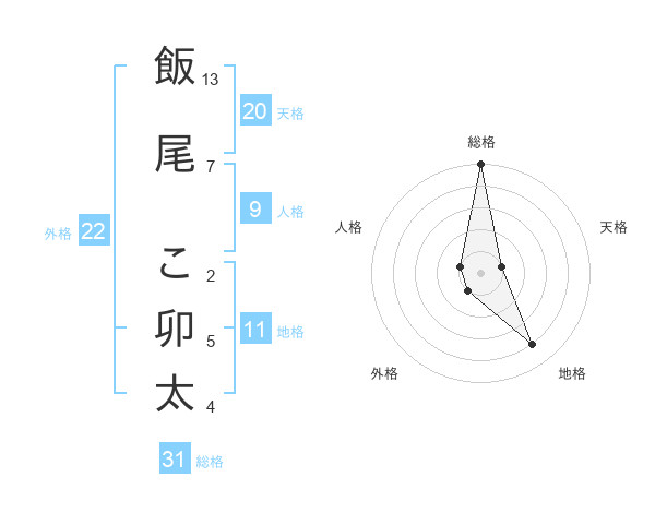 飯尾 こ卯太さんを姓名の画数から五運を鑑定