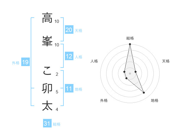 高峯 こ卯太さんの総格は31画の5点!