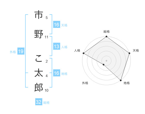 市野 こ太郎さんを姓名の画数から五運を鑑定
