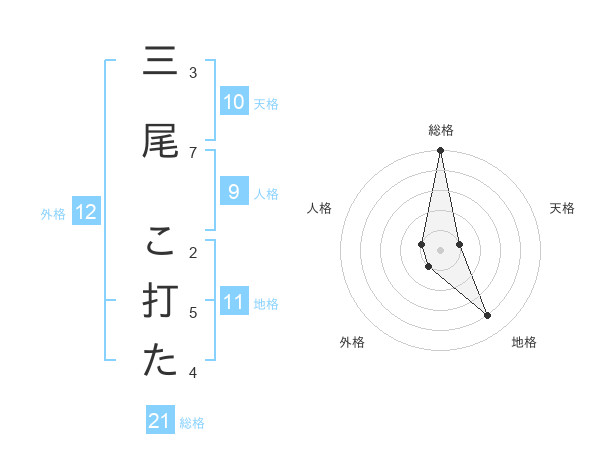 三尾 こ打たさんを姓名の画数から五運を鑑定