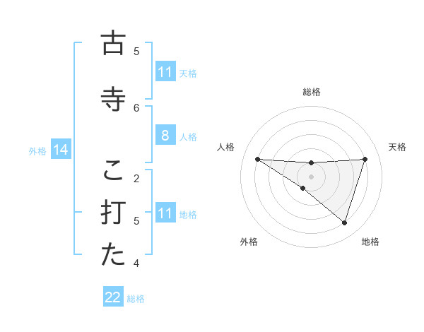古寺 こ打たさんを姓名の画数から五運を鑑定
