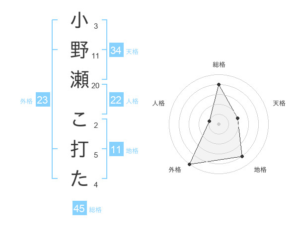 小野瀬 こ打たさんの名前の鑑定結果は!