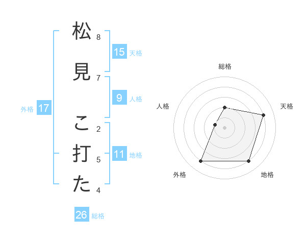松見 こ打たさんを姓名の画数から五運を鑑定
