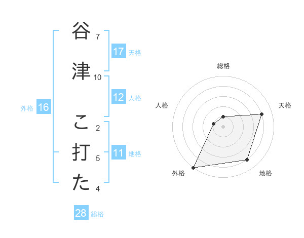 谷津 こ打たさんを姓名の画数から五運を鑑定