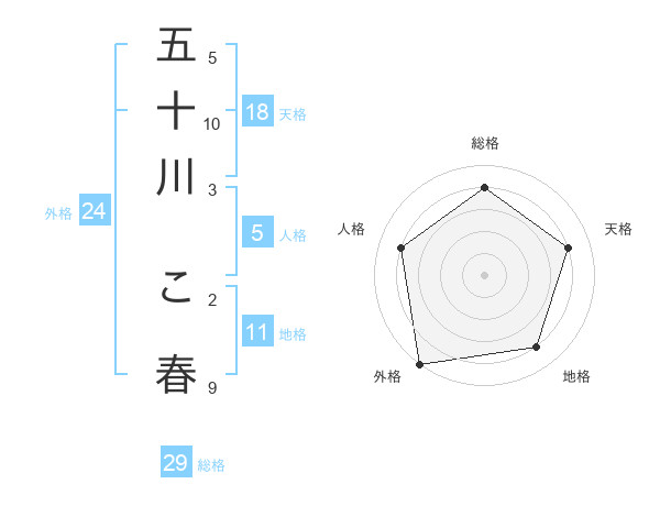 五十川 こ春さんを姓名の画数から五運を鑑定