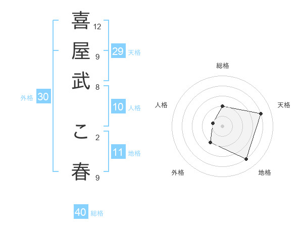喜屋武 こ春さんを姓名の画数から五運を鑑定