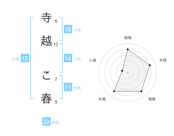 寺越 こ春さんを姓名の画数から五運を鑑定