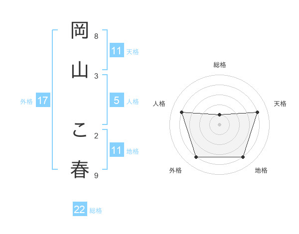 岡山 こ春さんの総格は22画の1点