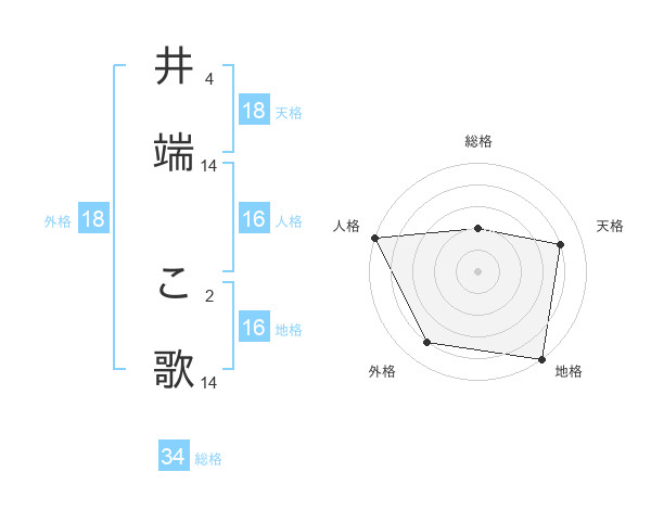 井端 こ歌さんの天格は18画の4点!