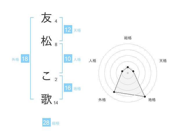 友松 こ歌さんの外格は18画の4点!