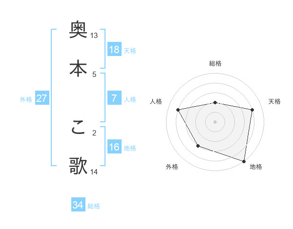 奥本 こ歌さんの総格は34画の2点!
