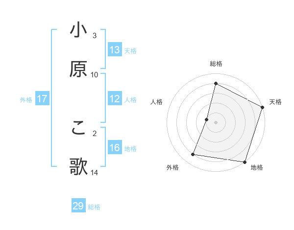 小原 こ歌さんを姓名の画数から五運を鑑定